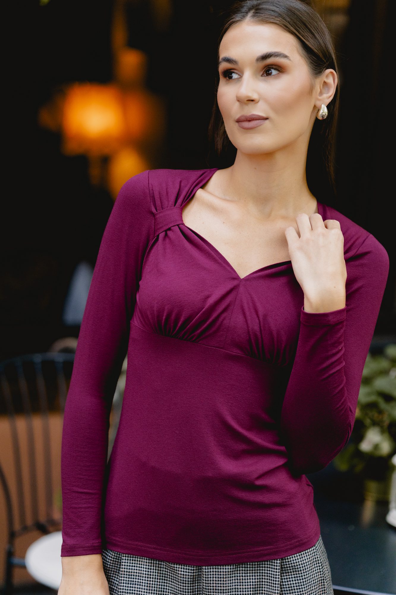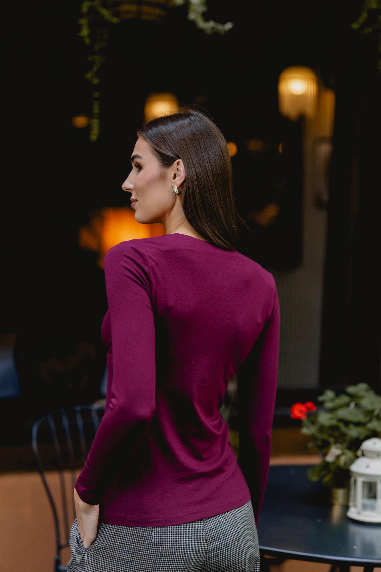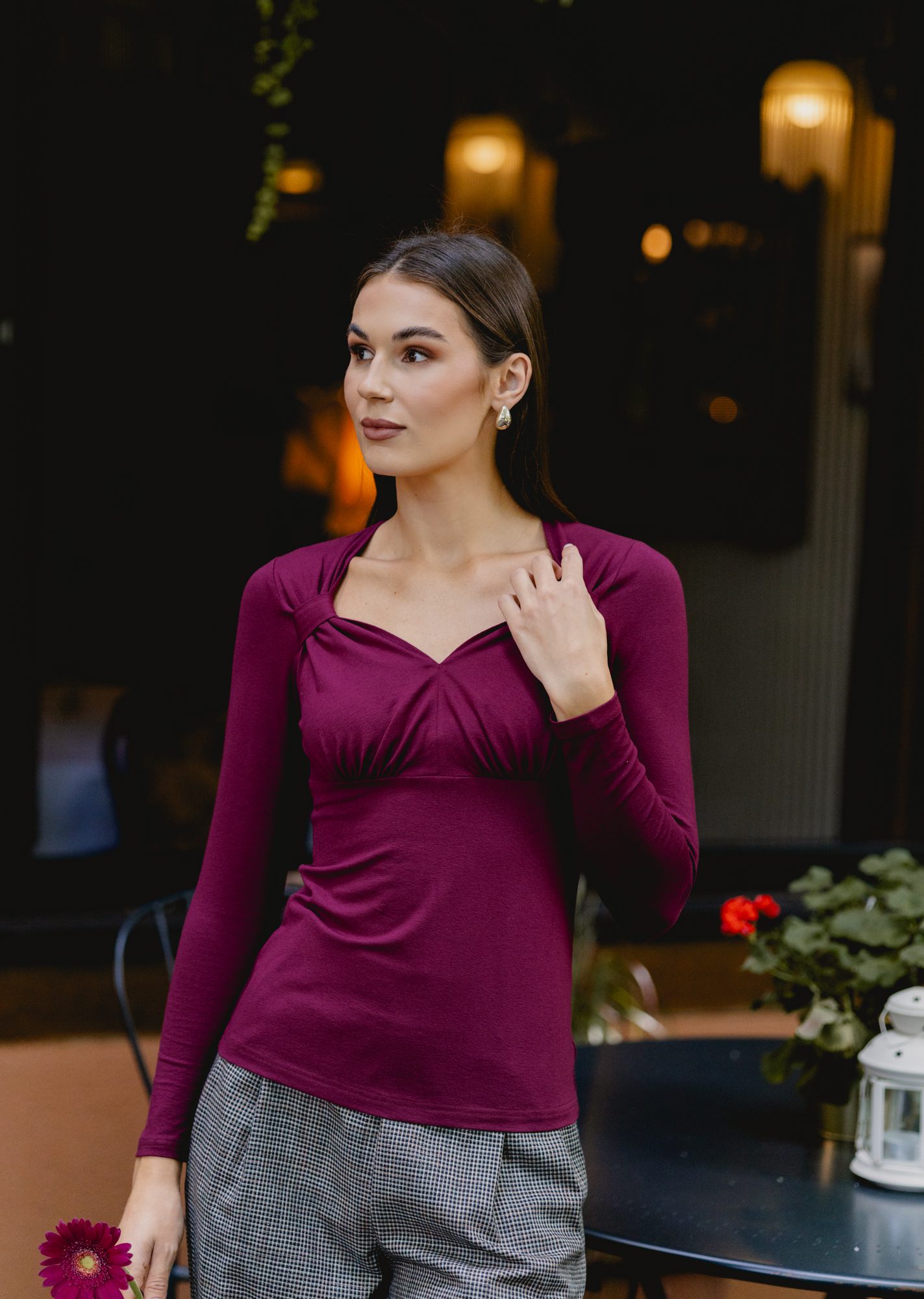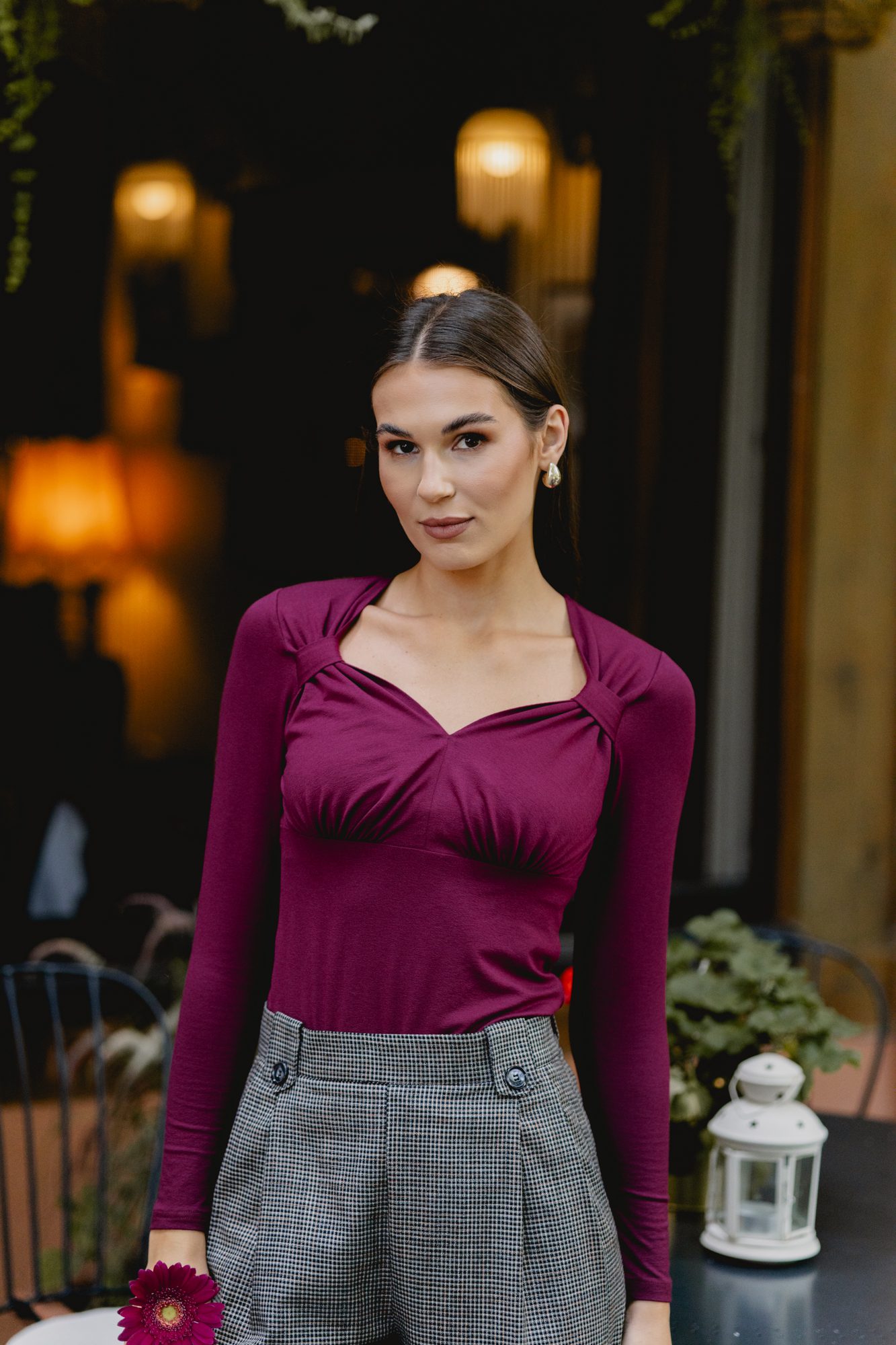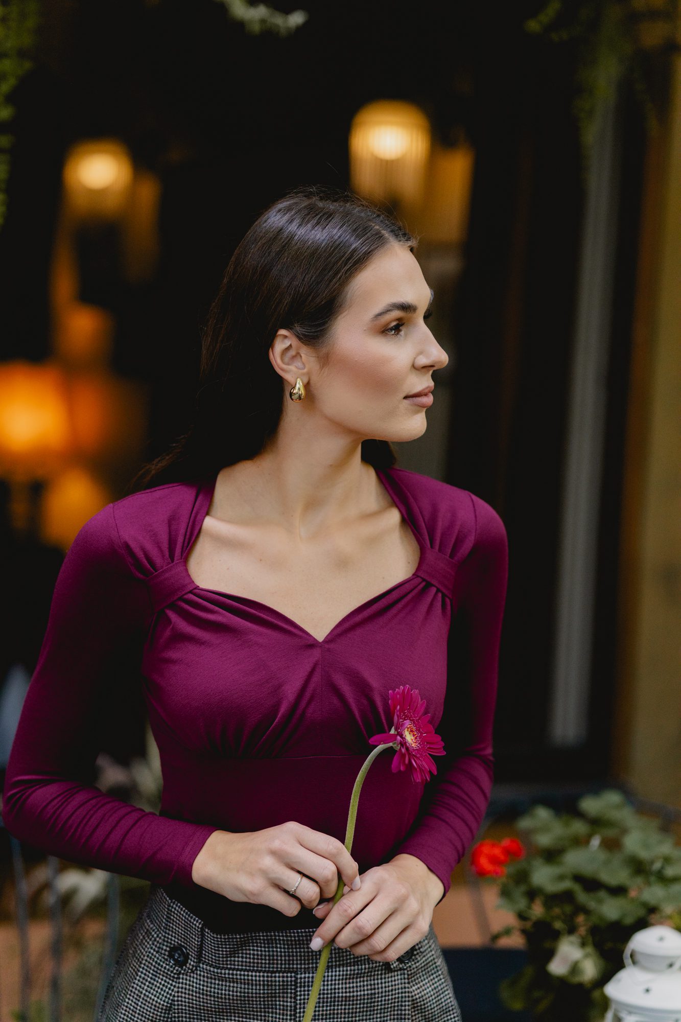 Carla to bluzka, która łączy w sobie klasykę z nutą romantyzmu. Jej głęboki, odcień przyciąga spojrzenia i sprawia, że każda stylizacja nabiera charakteru. Idealna zarówno do pracy, jak i na wieczorne spotkania – zawsze doda Ci pewności siebie i szyku.