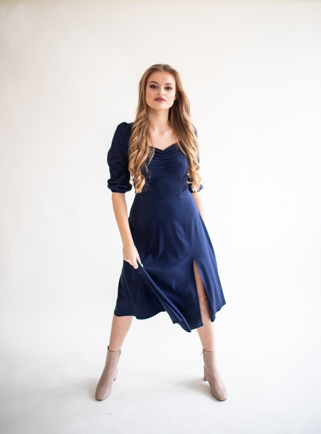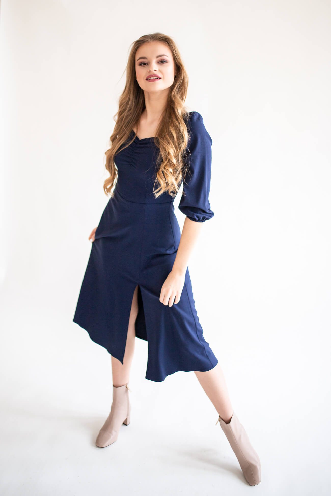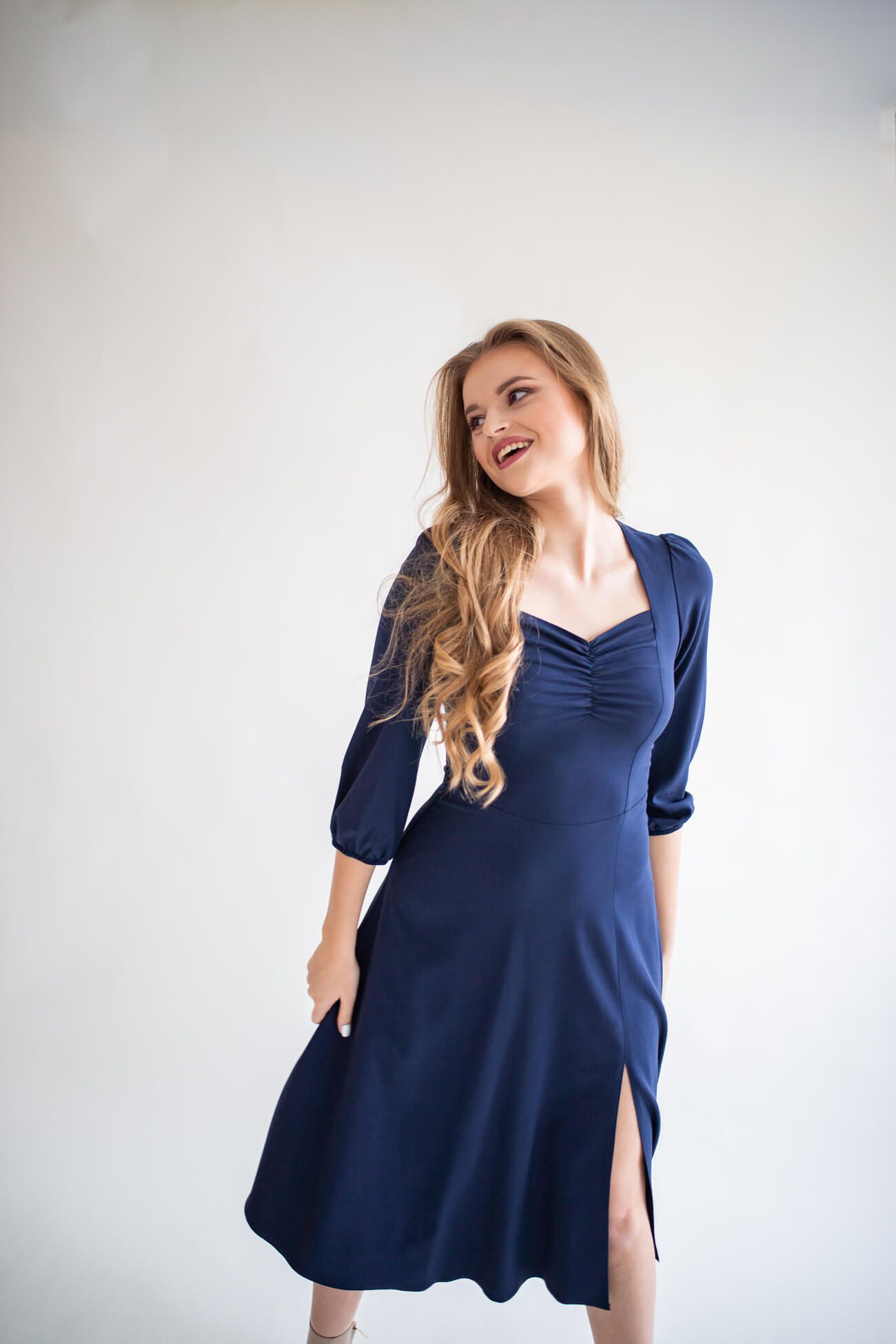 Clementine navy blue – sukienka midi z dekoltem „serce”