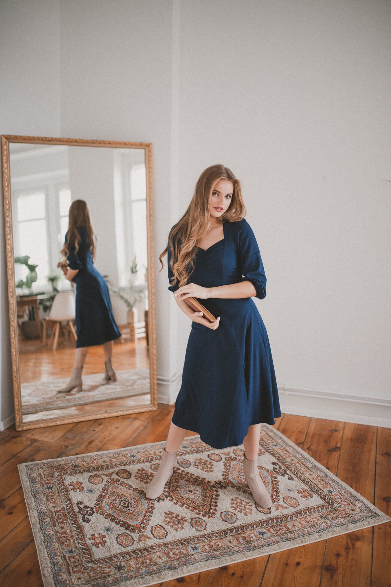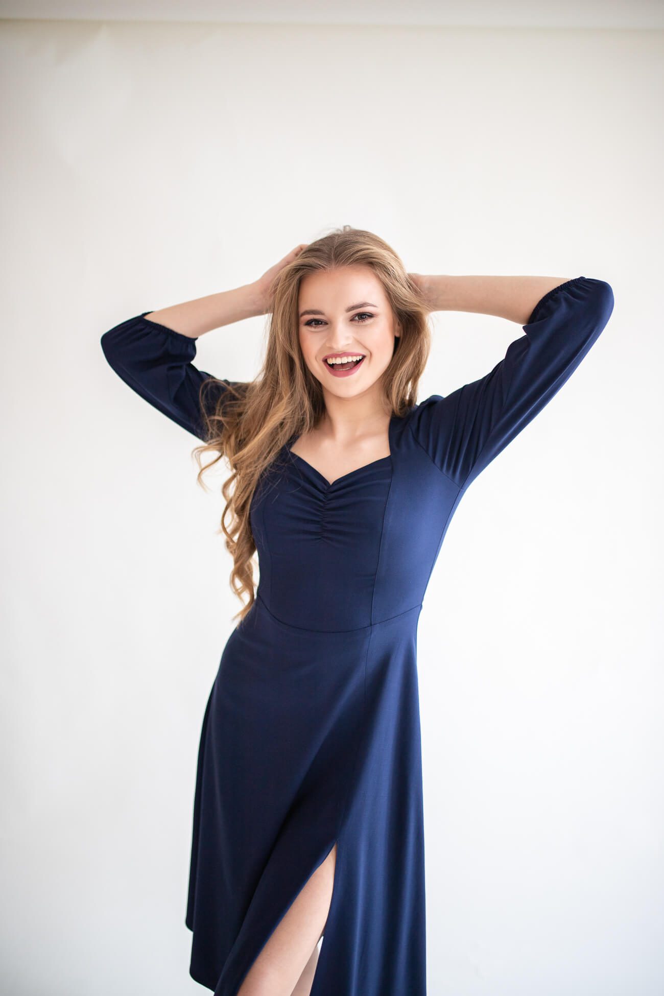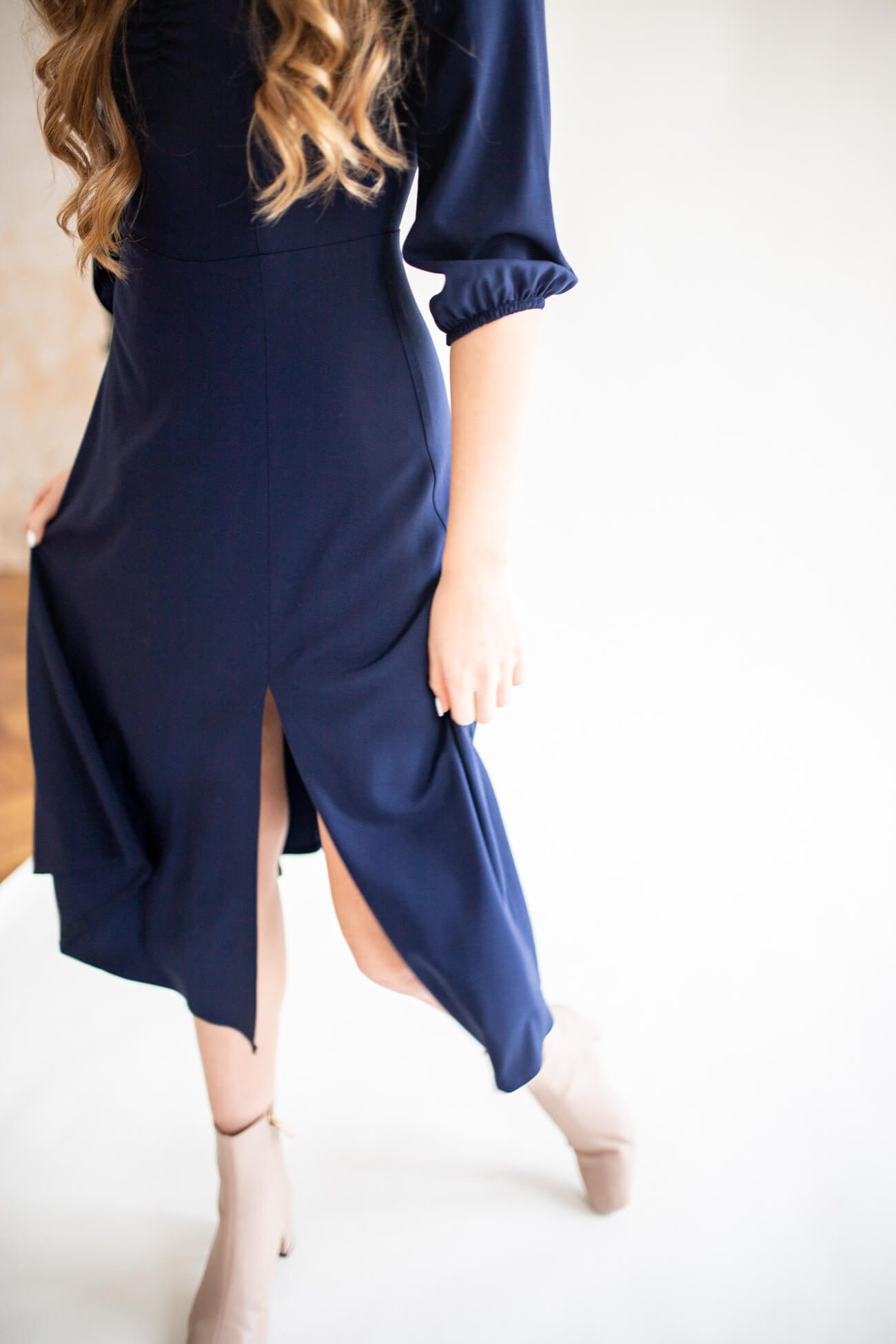 Clementine navy blue – sukienka midi z dekoltem „serce”