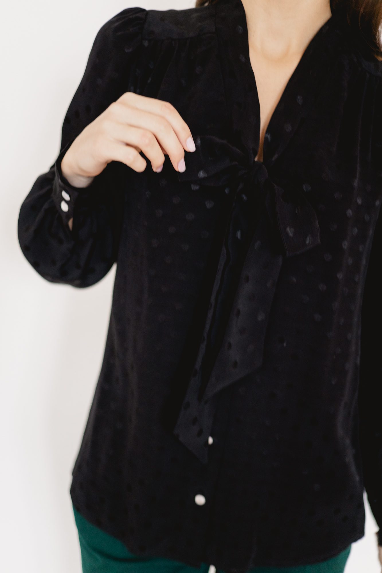 Koszula Anabel Black – efektowna koszula z wiązaniem z żakardowej tkaniny