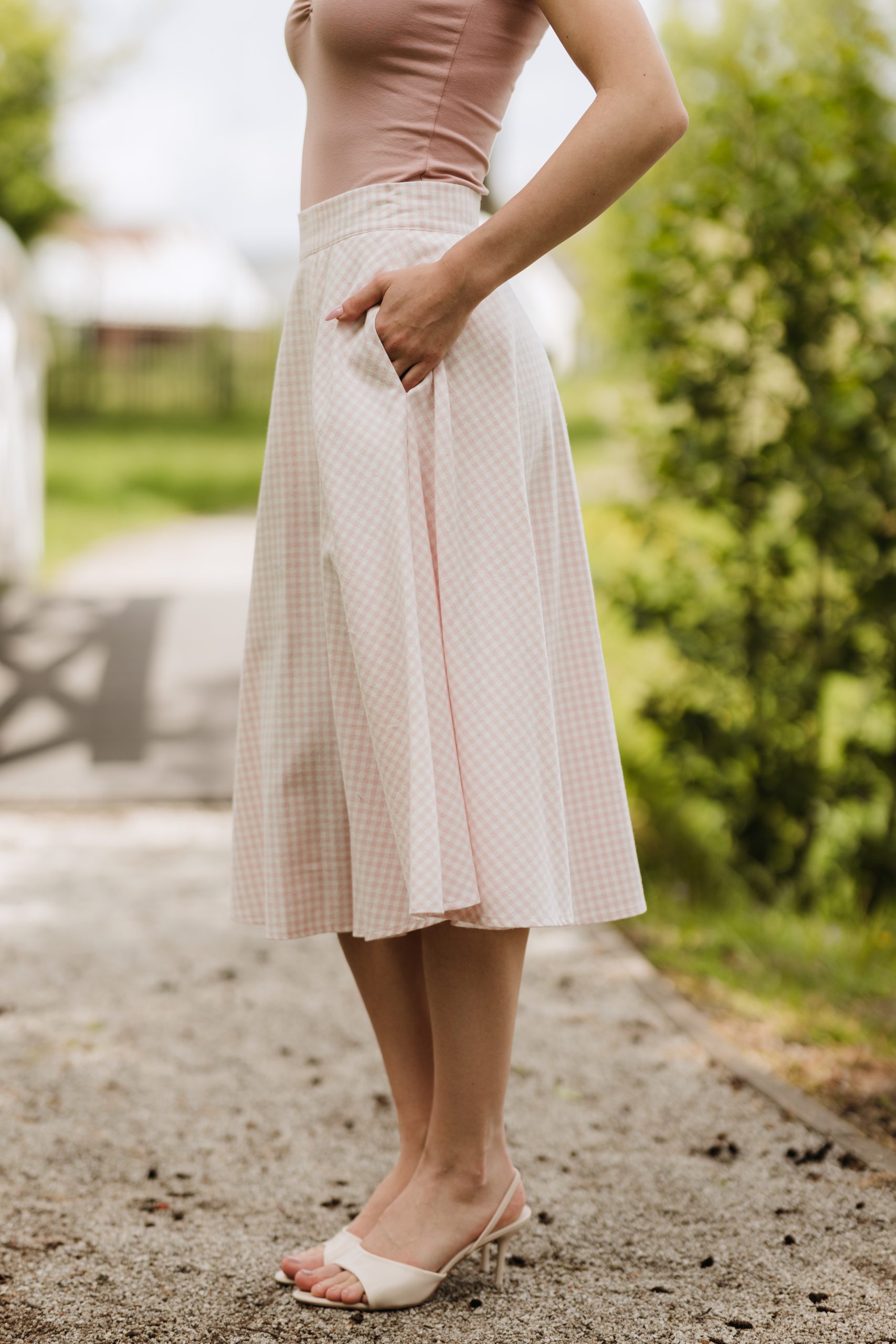 Spódnicę Evelyne uszyliśmy z półkoła dzięki czemu świetnie układa się w podczas ruchu. Modna kratka vichy w odcieniach różowego sprawia, że możesz ją łączyć z wieloma elementami swojej garderoby. Posiada również kieszenie oraz jest wykonana z bawełny, dzięki czemu upały nie będą Tobie straszne!