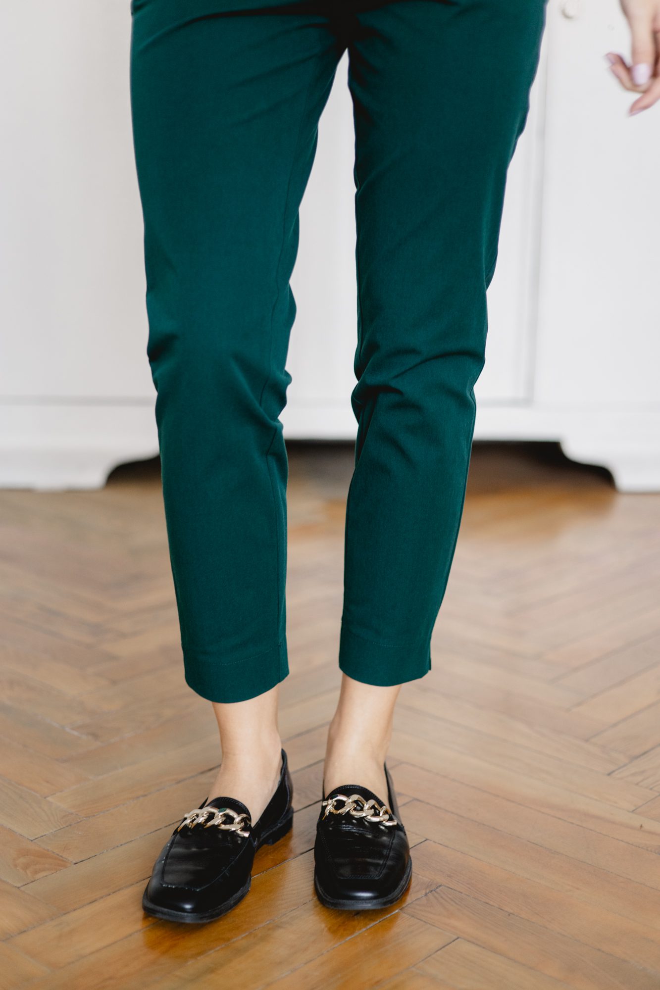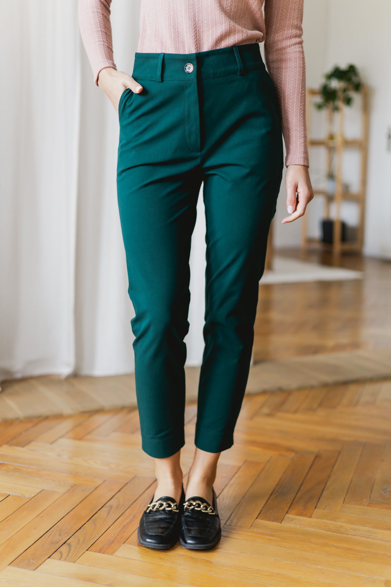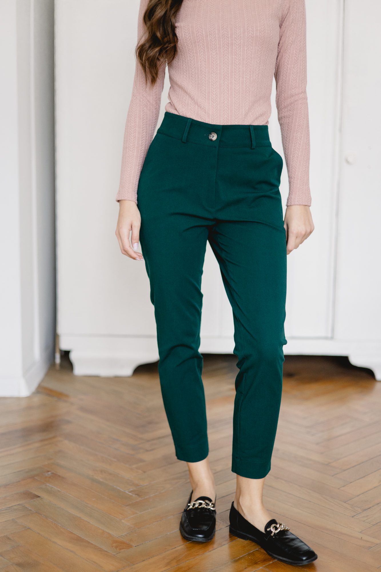 Klasyczne, szmaragdowe spodnie z wysokiej jakości tkaniny znajdą zastosowanie w każdej kobiecej szafie. Jeśli cenisz wygodę, ale nie chcesz codziennie chodzić w jeansach, to wybór idealny dla Ciebie. Pasują zarówno do codziennych, jak i bardziej eleganckich stylizacji, możesz je założyć zarówno do pracy, jak i na randkę.