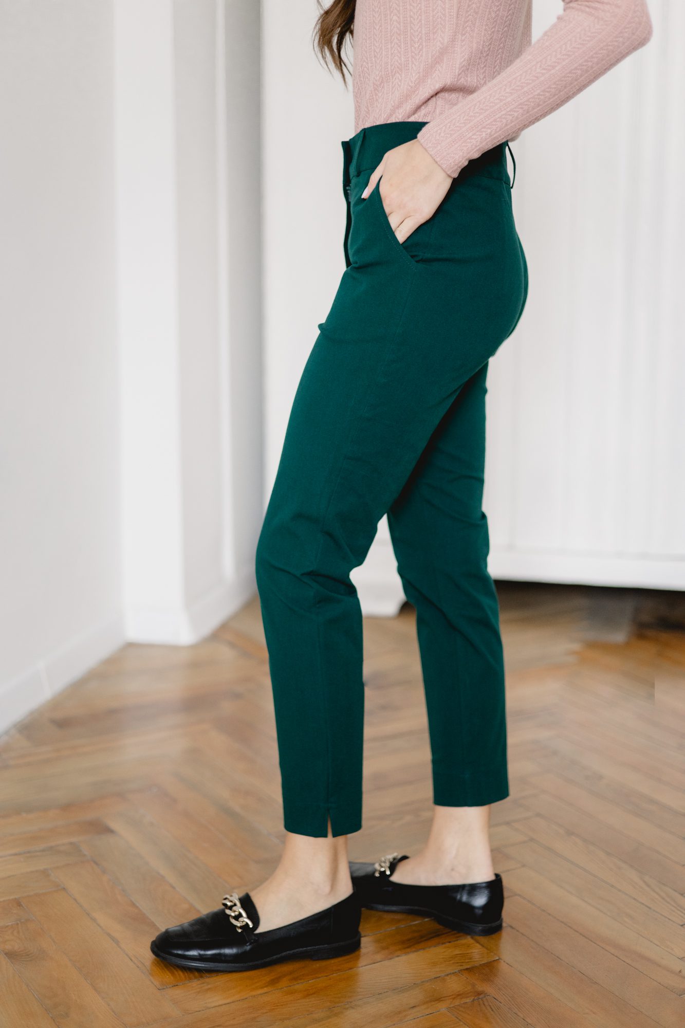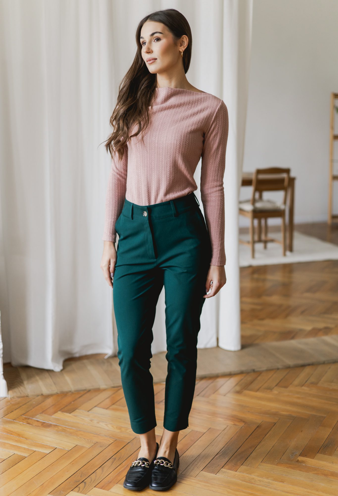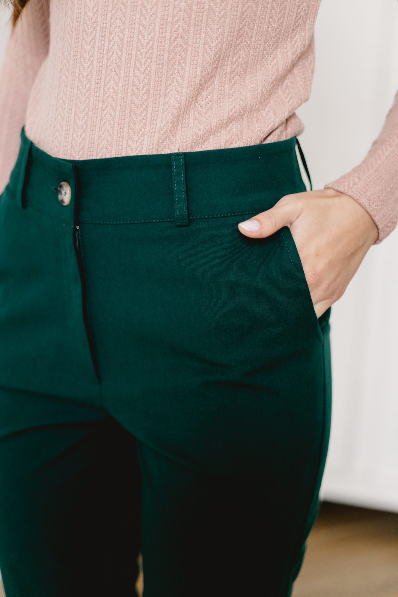Klasyczne, szmaragdowe spodnie z wysokiej jakości tkaniny znajdą zastosowanie w każdej kobiecej szafie. Jeśli cenisz wygodę, ale nie chcesz codziennie chodzić w jeansach, to wybór idealny dla Ciebie. Pasują zarówno do codziennych, jak i bardziej eleganckich stylizacji, możesz je założyć zarówno do pracy, jak i na randkę.
