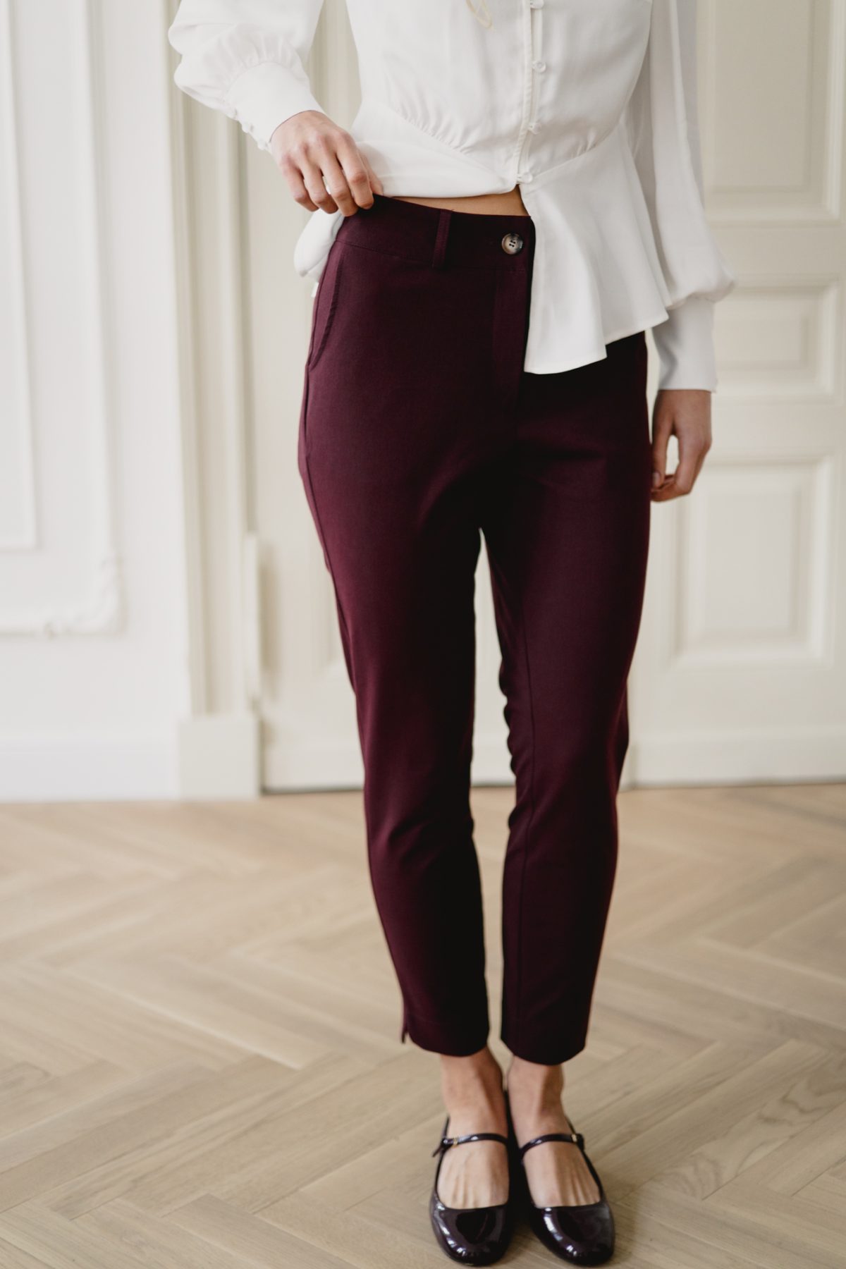 Klasyczne, bordowe spodnie z wysokiej jakości tkaniny znajdą zastosowanie w każdej kobiecej szafie. Jeśli cenisz wygodę, ale nie chcesz codziennie chodzić w jeansach, to wybór idealny dla Ciebie. Pasują zarówno do codziennych, jak i bardziej eleganckich stylizacji, możesz je założyć zarówno do pracy, jak i na randkę.