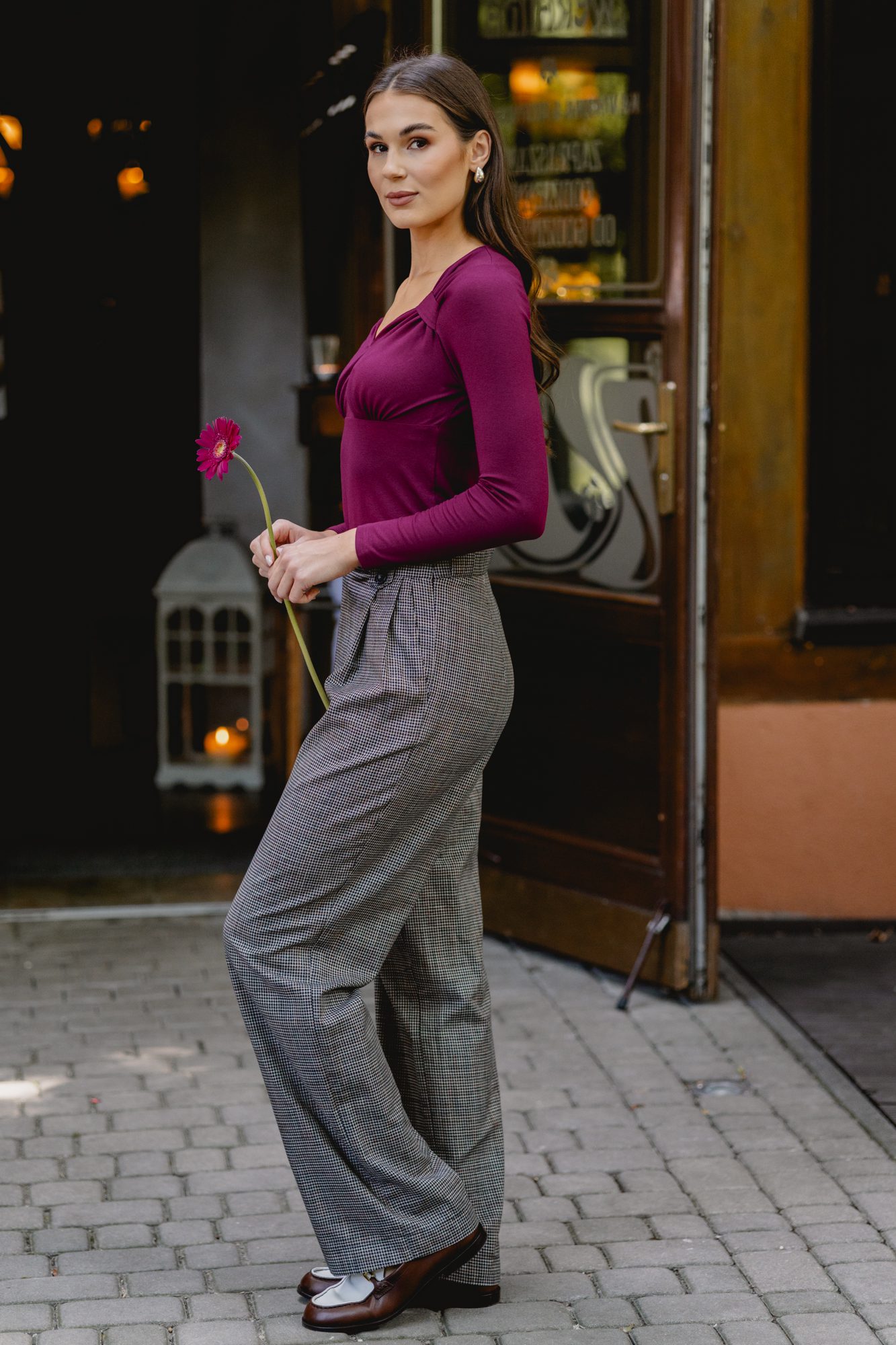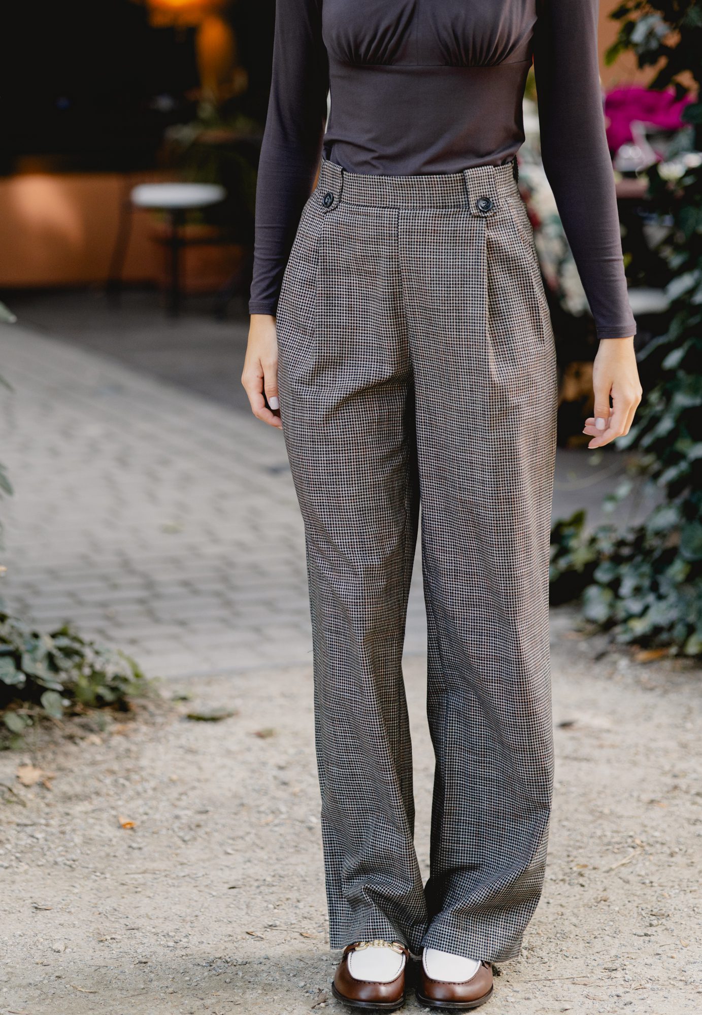 Spodnie Vincent to klasyczny fason z szerokimi nogawkami. Posiadają kryty zamek w bocznym szwie. Przednie szlufki przyozdobione są guzikami dodającymi szczypty stylu retro. Zakładki z przodu gwarantują wygodę i maskują niedoskonałości. Posiadają kieszenie. Świetnie pasują zarówno do codziennych stylizacji w połączeniu z t-shirtem i płaskim obuwiem, jak i bardziej eleganckich – z koszulą, żakietem i szpilkami.