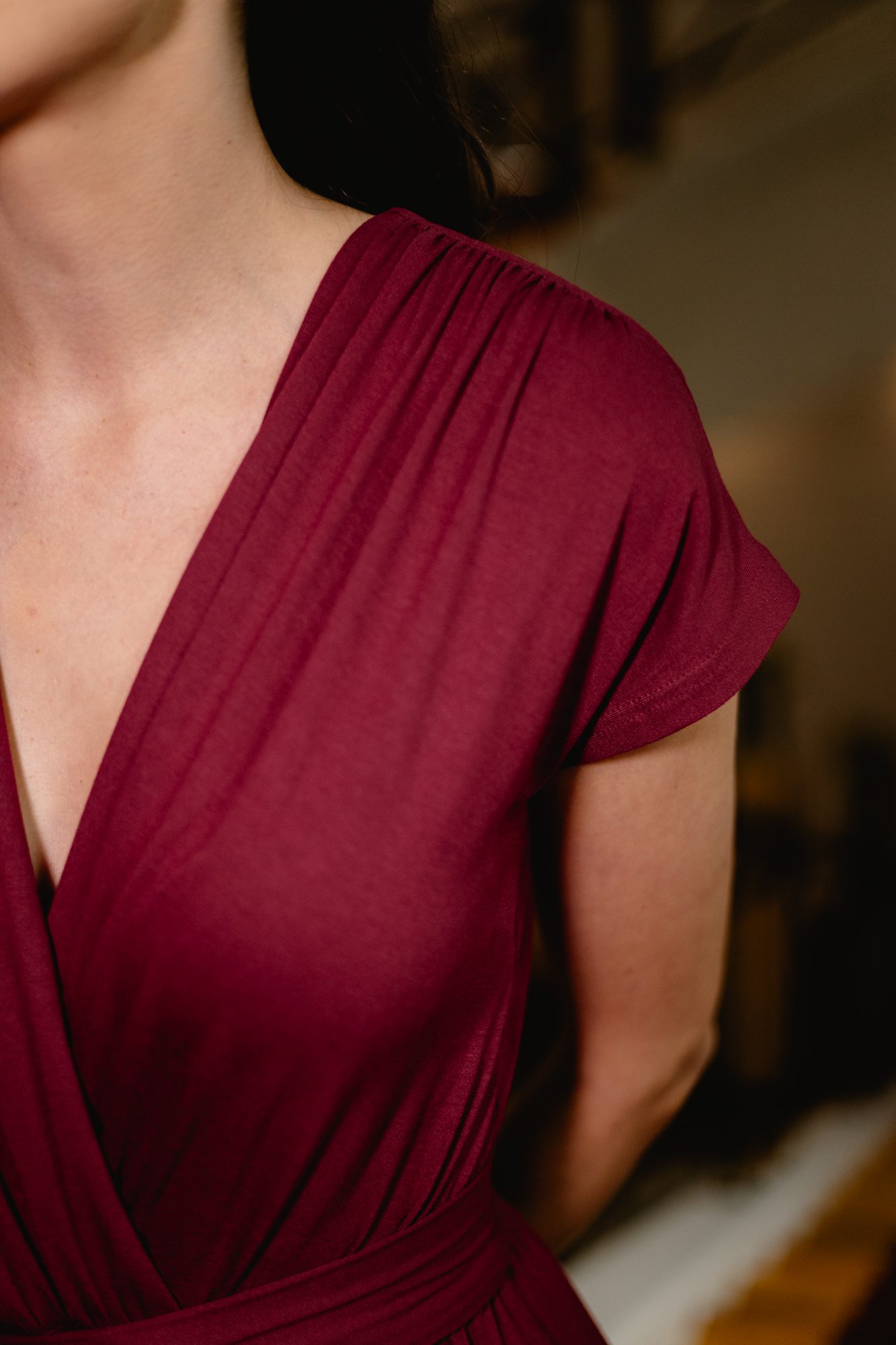 Sukienka została wykonana z miękkiej, elastycznej wiskozy, która jest przyjemna w dotyku i zapewnia komfort noszenia przez cały dzień. To model, który świetnie sprawdzi się na spotkania, uroczystości czy wieczorne wyjścia, a także w codziennych stylizacjach.