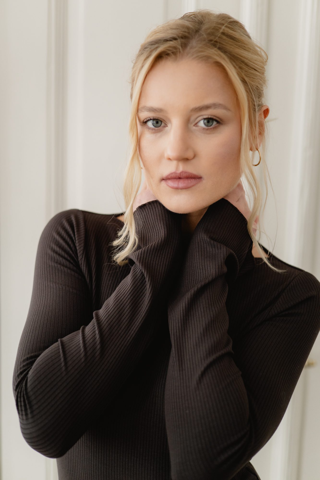 Lucile to model, który łączy prostotę kroju z wyrafinowanymi detalami. Wykonana z miękkiej, prążkowanej dzianiny, delikatnie otula sylwetkę, podkreślając jej naturalne kształty. Długie rękawy i długość midi nadają jej klasy i uniwersalności, a subtelne wykończenie mereżką dodaje lekkości oraz kobiecego uroku.