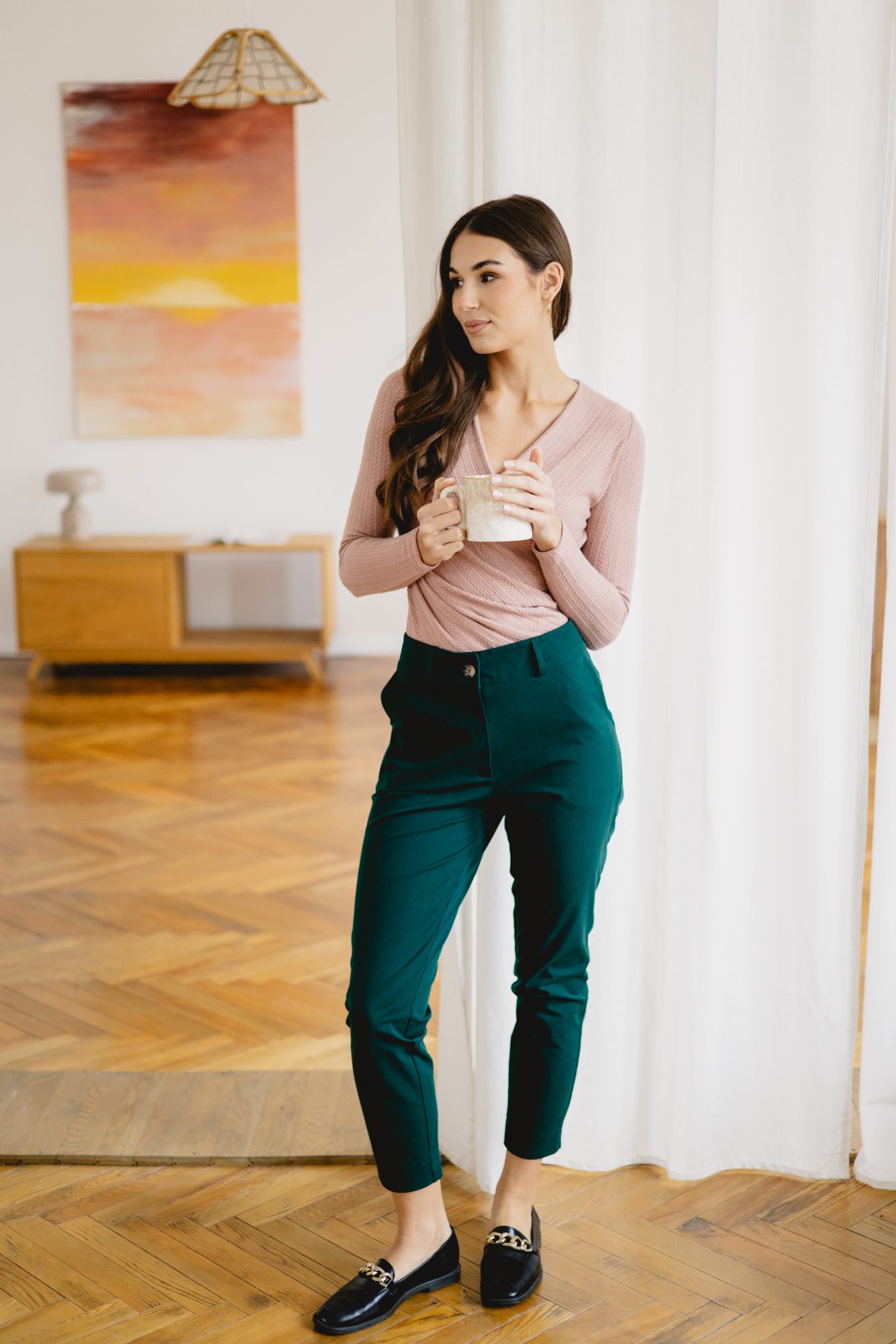 Melanie Dusty pink – sweter kopertowy z zakładkami